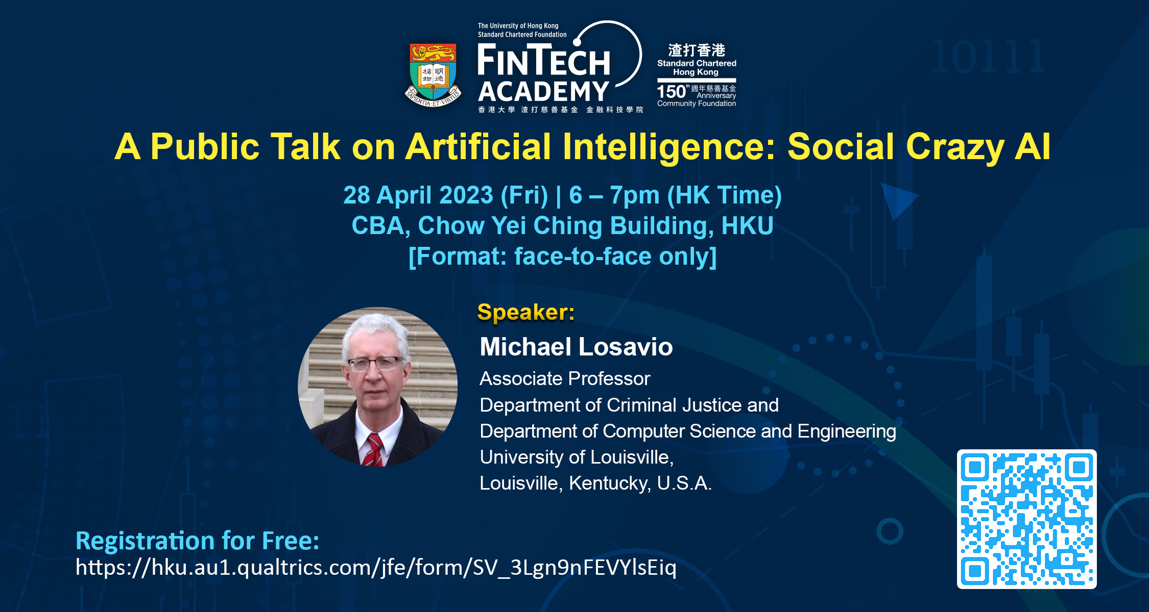 HKU-SCF FinTech Academy is delighted to have Professor Michael LOSAVIO as our speaker for this Public Talk. Professor LOSAVIO is an Associate Professor teaching in the Department of Criminal Justice and the Department of Computer Science and Engineering at the University of Louisville, Louisville, Kentucky, U.S.A. on issues of law, society and information assurance in the computer engineering and criminal justice disciplines.