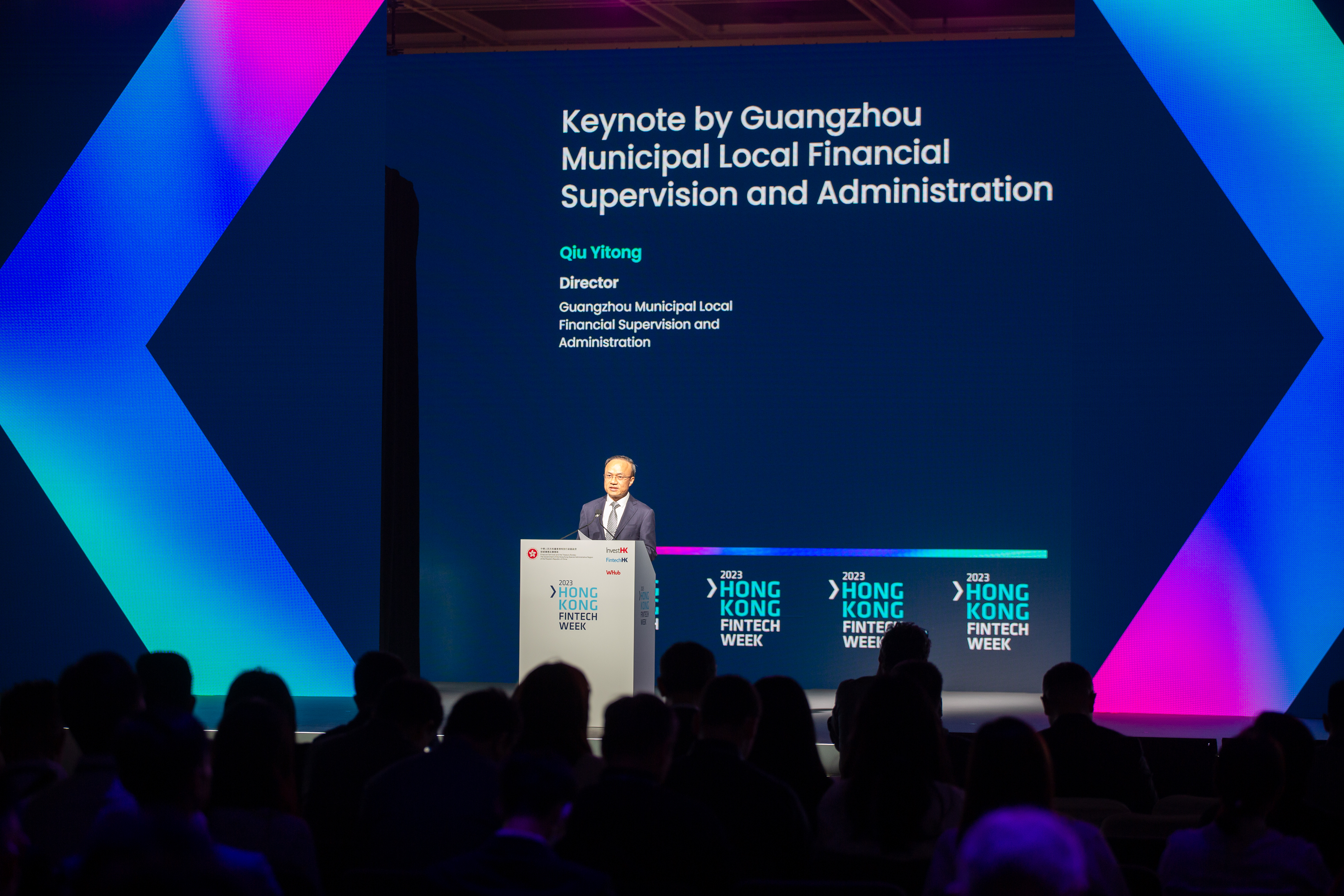 Qiu shared that as of September 2023, Guangzhou has 230 publicly traded companies and that the financial sector’s total assets have reached over 11 trillion RMB in value. He also highlighted strong points of Guangzhou’s financial sectors, such as a high concentration of financial institutions, successful financial pilot zones (e.g. the Guangzhou Green Finance Reform and Innovation Pilot Zone). He then outlined plans to develop Guangzhou’s Fintech economy, from encouraging Fintech innovation to fostering talents within the city. He ended the session by praising Hong Kong for having abundant resources to develop thriving Fintech companies, talents, and economies, adding that Guangzhou will “actively increase support for the financial industry, and through creating an excellent business environment, attract domestic and foreign financial institutions to set up headquarters, and encourage key market players like financial trading platforms and Fintech companies to develop in Guangzhou.”