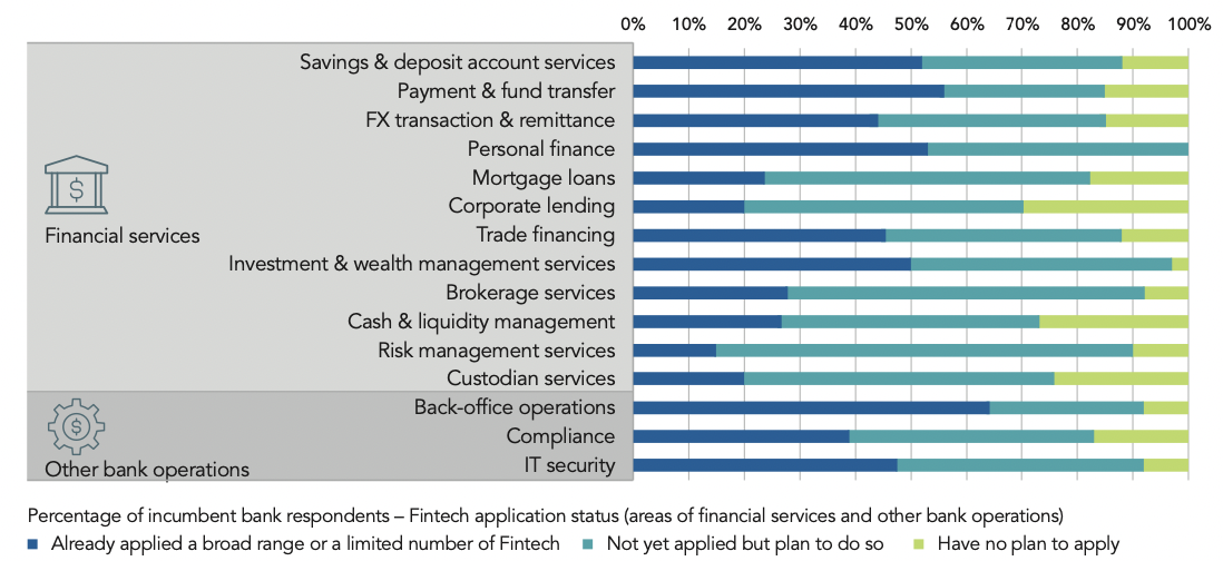在報告中,半數或以上的傳統銀行表示,它們在儲蓄和存款賬戶服務、支付結算、個人金融、投資和財富管理服務、後臺運營和 IT 安全系統等領域採用了金融科技解決方案。這也表明,香港銀行業正在積極通過各種數字化和自動化的手段降本增效,擴大客戶基礎並增加業務機會。
