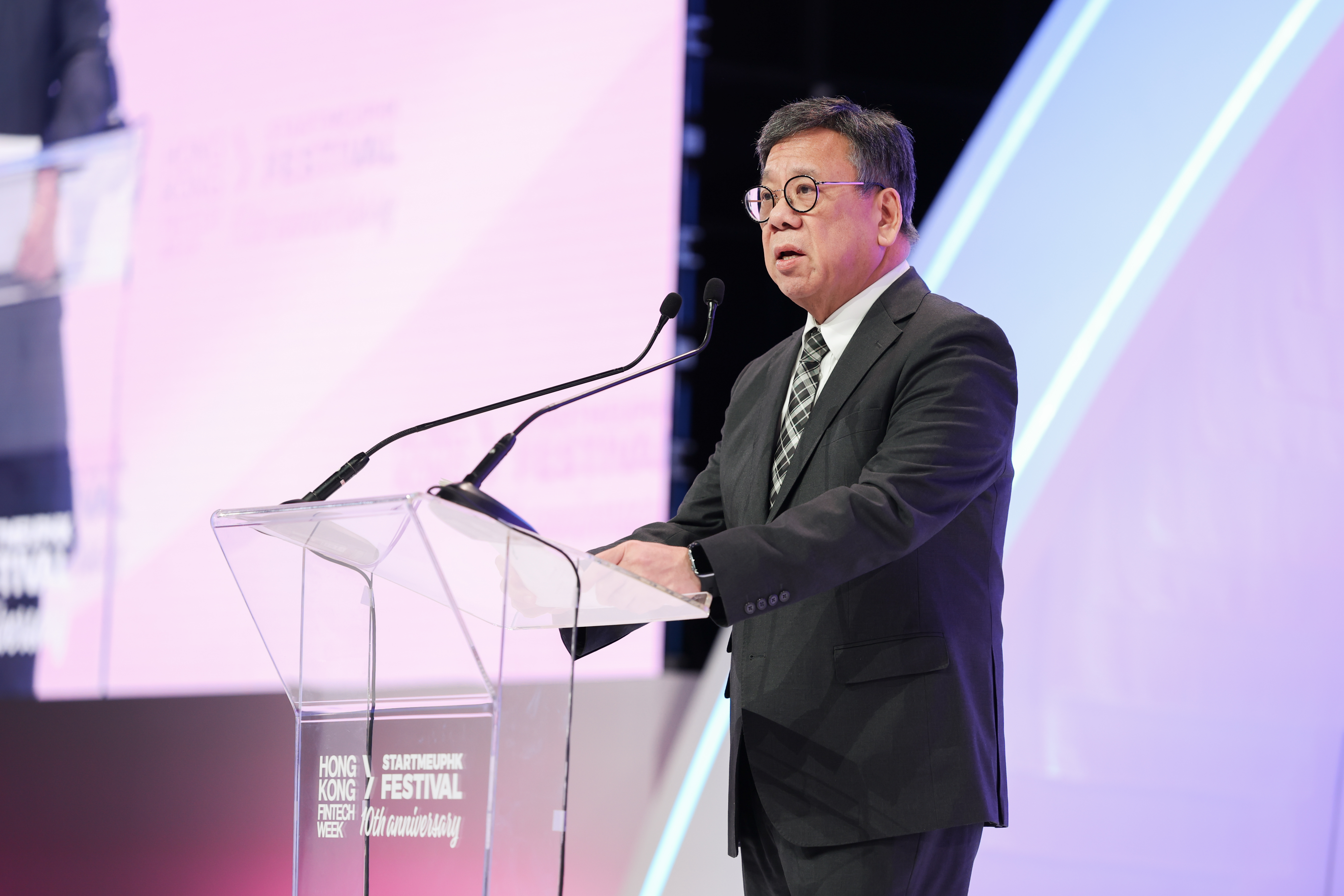 陳茂波以闡述香港金融科技的戰略願景展開討論,指出數字化轉型具有巨大潛力,而香港監管機構在促成創新方面亦扮演重要角色。他表示:「十年來,香港金融科技周和StartmeupHK創業節這兩項活動彰顯了影響力、抱負和創意。它們匯聚了來自世界各地的企業家、全球投資者、政策制定者和業界先驅,他們都抱着共同信念:科技能讓金融更普惠、更高效和更貼近人性。」